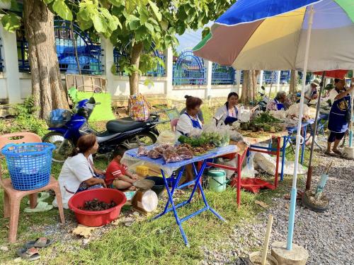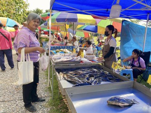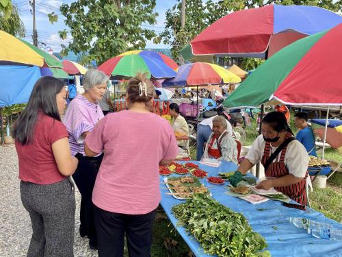 นางสาวโสภาวดี ผ่องแผ้ว พัฒนาการอำเภอคอนสาร พร้อมด้วย เจ้าหน้าที่พัฒนาชุมชนอำเภอคอนสาร ร่วมเยี่ยม ชิม ช็อป ตลาดประชารัฐ ดูสินค้า otop และให้กำลังใจผู้ประกอบการ