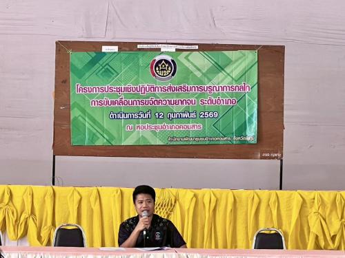 นางสาวโสภาวดี ผ่องแผ้ว พัฒนาการอำเภอคอนสาร พร้อมด้วย เจ้าหน้าที่พัฒนาชุมชนอำเภอคอนสาร จัดการประชุมส่งเสริมการบูรณาการกลไกการขับเคลื่อนการขจัดความยากจน ระดับอำเภอ อำเภอคอนสาร จังหวัดชัยภูมิ เพื่อให้ศูนย์อำนวยการปฏิบัติการขจัดความยากจนและพัฒนาคนทุกช่วงวัยอย่างยั่งยืนตามหลักปรัชญาของเศรษฐกิจพอเพียงอำเภอ (ศจพ.อ.) มีแนวทางการขับเคลื่อนการดำเนินงานแบบบูรณาการ ครอบคลุมทุกมิติและเป็นรูปธรรม โดยผู้เข้าร่วมประชุมประกอบด้วยคณะกรรมการบริหารศูนย์อำนวยการขจัดความยากจนและพัฒนาคนทุกช่วงวัยอย่างยั่งยืนตามหลักปรัชญาของเศรษฐกิจพอเพียงอำเภอ (ศจพ.อ.) และภาคีเครือข่ายที่เกี่ยวข้อง